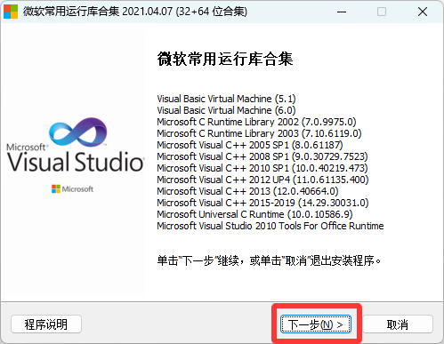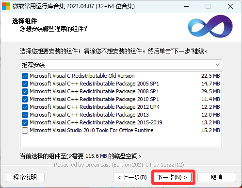 19. 选着所需要安装的软件版本(这里根据需求安装,比如有就版本的程序需要打开时,需要安装)。