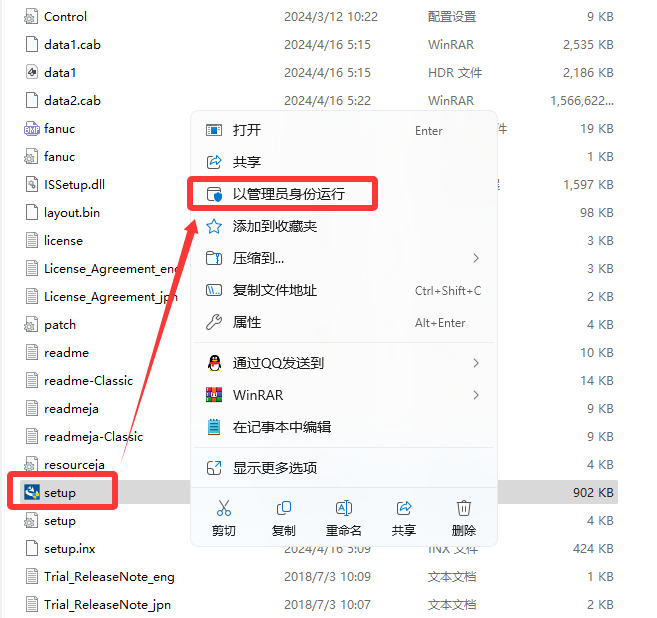 11. 继续鼠标右击【SetUp】以管理员方式运行。