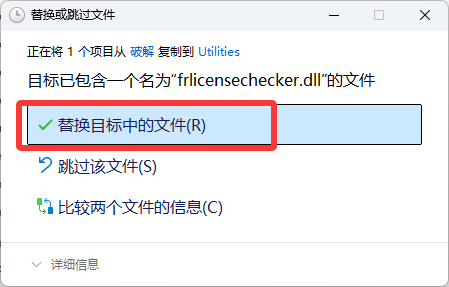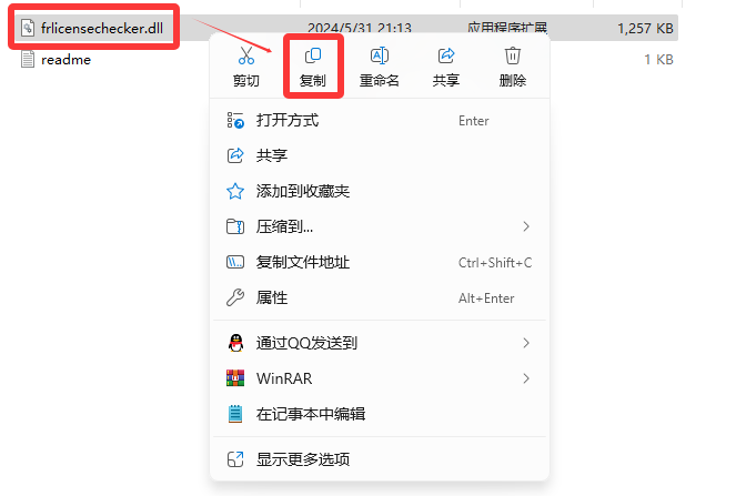 29. 双击打开已解压的【破解】文件夹,右击【frlicensechecker.dll】复制