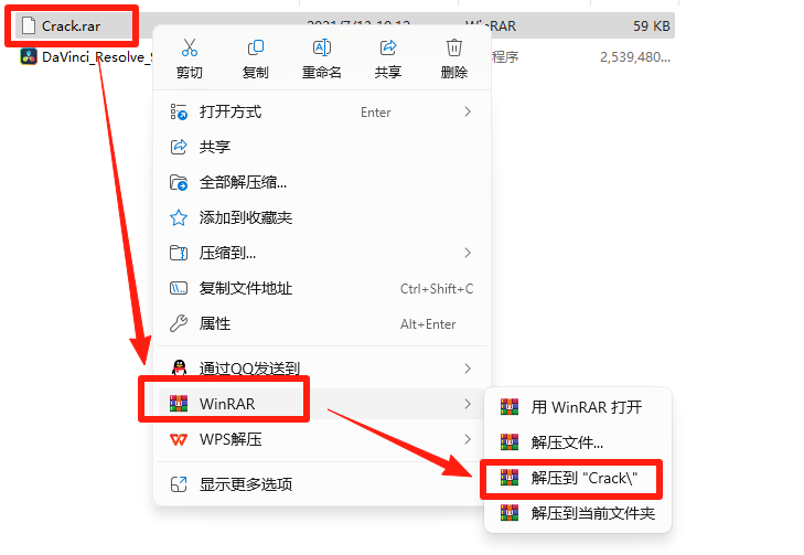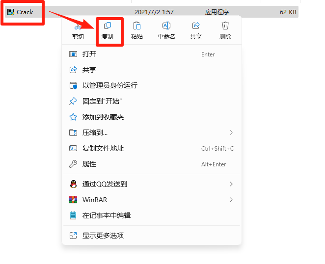 12.打开上一步解压的文件夹,右击【Crack】,选择【复制】。