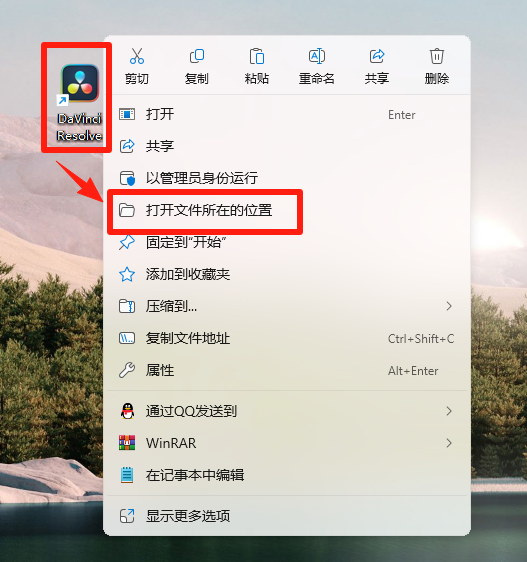 13.桌面找到安装的图标,右击打开,选择【打开文件夹所在的位置】。