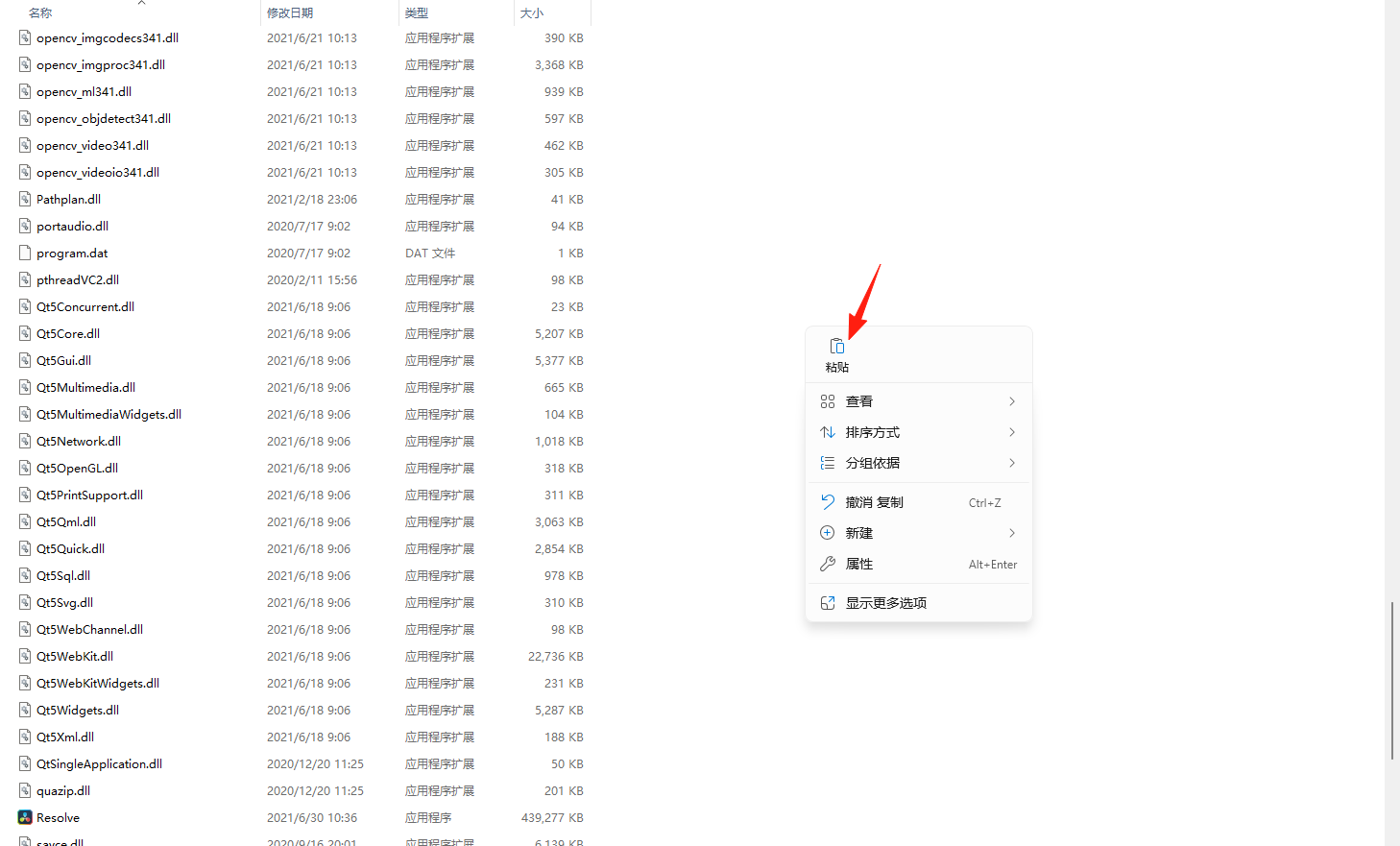 14.右键点击在空白处,选择【粘贴】。