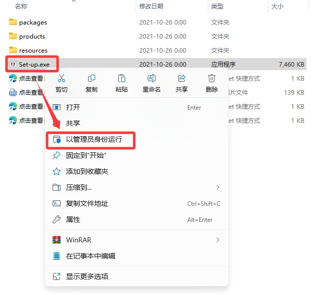 3.鼠标右击打开后的【setup】选择【以管理员身份运行】。
