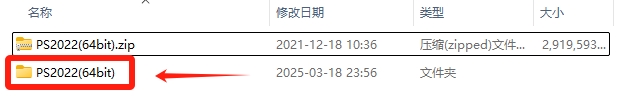 1.解压安装包:①鼠标右击【PS2022(64bit).zip】压缩包②选择电脑上安装的解压软件(如:360压缩)③点击【解压到 PS2022(64bit)】。