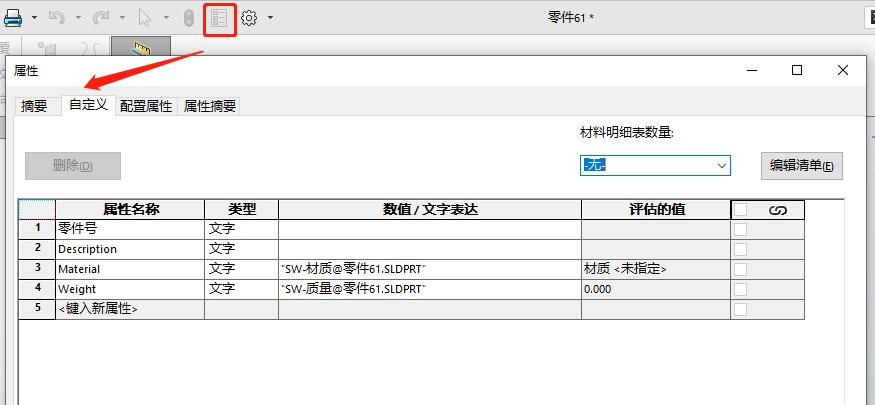 自定义属性可以从自定义属性窗口中写入,属性模版如何制作,详见《SOLIDWORKS属性标签模板的制作》